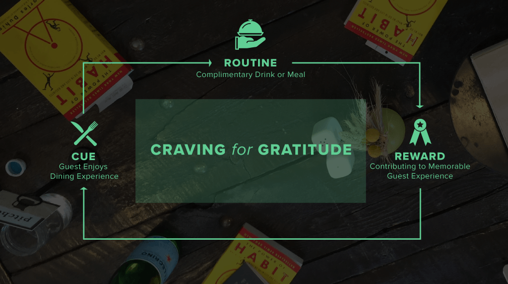 The genius of Stulman’s management style is not in giving away free meals but in empowering his employees to do so. When a guest has a particularly good experience (the cue) a team member follows the routine of comping a meal or drink for them, and the reward is an ecstatic guest, a great review, and hopefully a recommendation. Do this enough times and employees start to develop a “craving” for exceptional guest interactions. By encouraging the habit of handing out a complimentary meal or drink to a happy customer, Stulman is actually creating a host of other smaller habits – pulling out a chair for a guest or giving a drink recommendation – to ensure that every single patron has a memorable experience.